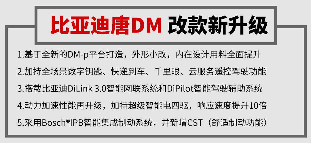 唐DM的这一代动作,可谓完美诠释了“比你有实力的人并不可怕,可怕的是比你有实力的人比你更努力”这句话。但夸赞归夸赞,改款升级的唐DM到底有什么变化?是否能给竞争者们更猛烈的一击呢?