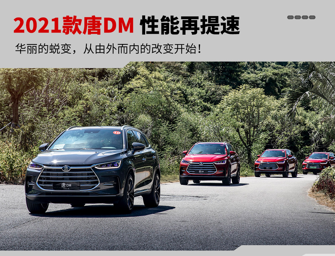 不过,唐DM似乎并不满足于此,继同门师兄弟比亚迪汉、宋PLUS等重磅车型相继亮相以后,趁热打铁的唐DM也快速地推出2021款改款车型,也因此吸引一大波消费者的眼球。