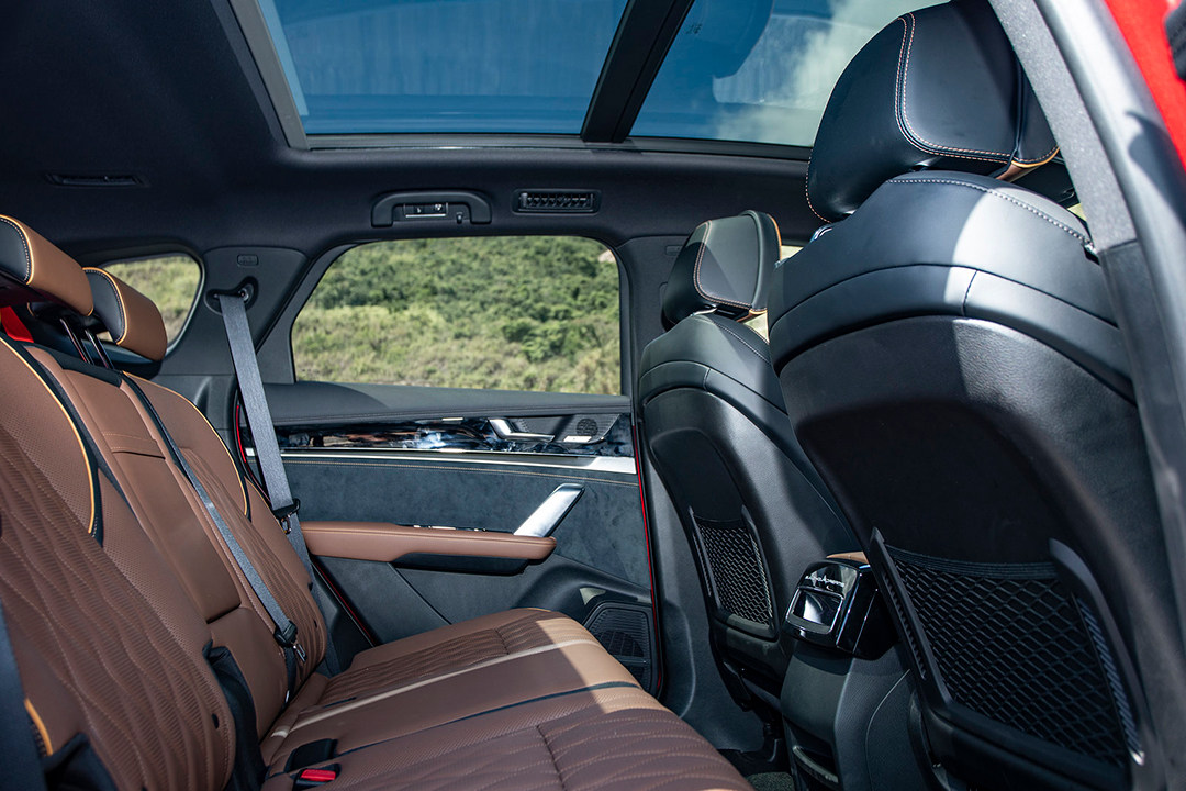 另一厢,二排中央地板设计纯平,很好地切中国人消费者对SUV的空间诉求,给足了用户诚意。只可惜,照顾得了二排就兼顾不到三排,舒适性大打折扣。好在有真皮座椅、通透性、开扬感强的全景天窗为其加分,降低乘坐压抑感。