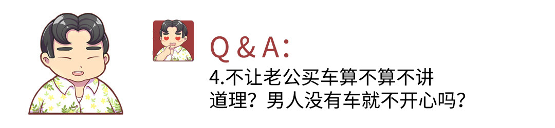 至于后一个问题,至少相当部分的男人对于车,都会有一种特别的情愫,或许这是对于青春中二热血的一种缅怀吧。当然对于是否买车,还是要理性对待。所以买不买车事小,夫妻感情事大。