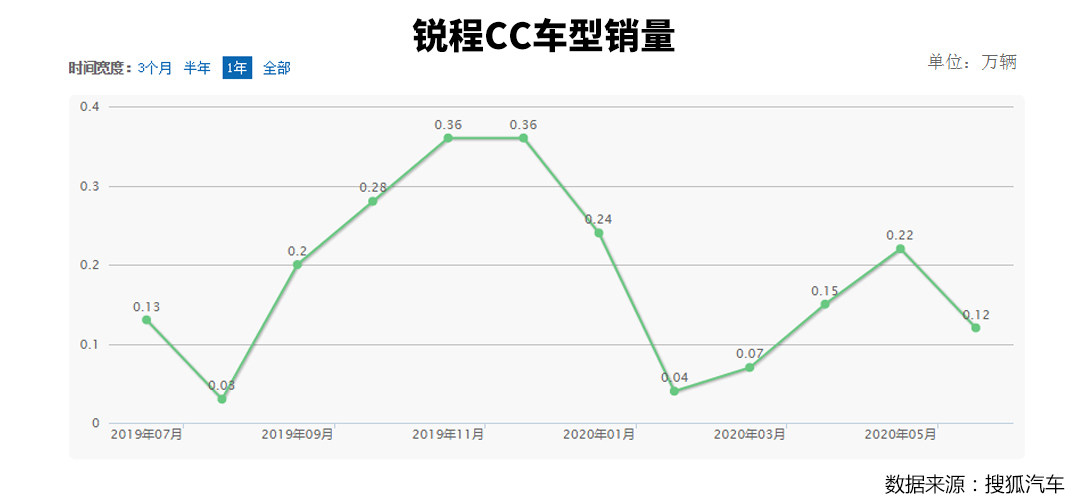 其实无论是从最开始的睿骋到现款锐程CC,在市场上的销量表现也非常一般,近一年来最高月销量也就仅达到3600辆左右,也就比其他国产B级车卖的稍微好一些,在市场上基本同样属于冷门车型的范畴。