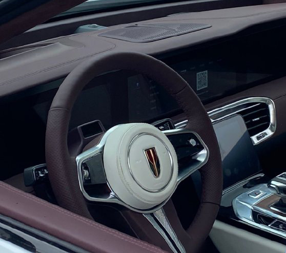 但在E-HS9身上红旗进一步加强了车厢高级感和科技感的氛围,方向盘同为三辐式设计,不过取消了下边镂空的造型,观感上显得更加时尚运动,且不管是黑色内饰还是紫砂红+象牙白内饰,方向中间位置都采用了白色的拼色搭配,高级感瞬间得到提升。