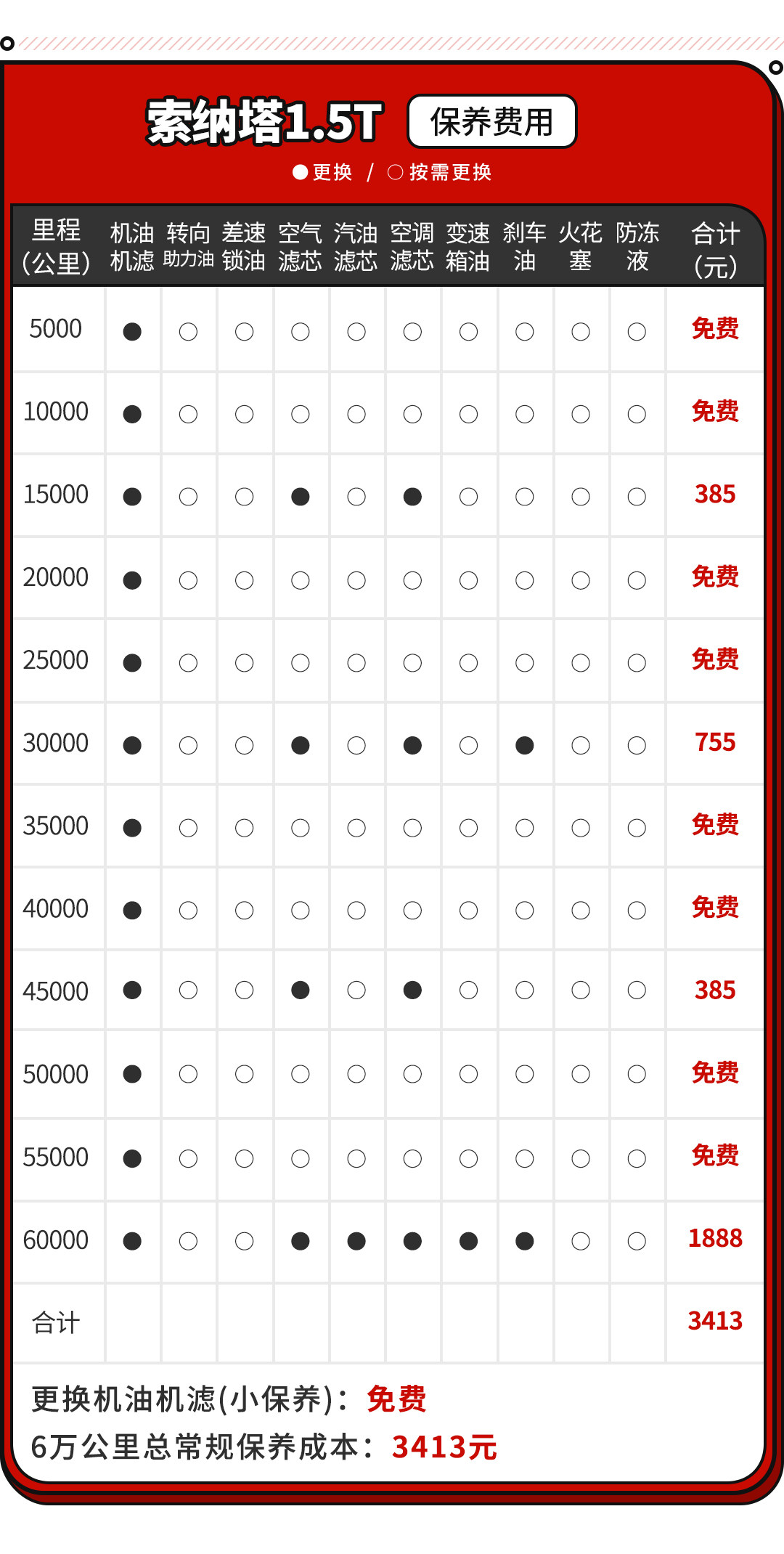 费用方面,可以看到该车保养一次只要385元,在总费用方面加上更换变速箱油液的费用,2.0T的保养价格是要比1.5T车型更加便宜的,6万公里算下来的费用只要3000出头,真的让一众对手望尘莫及。