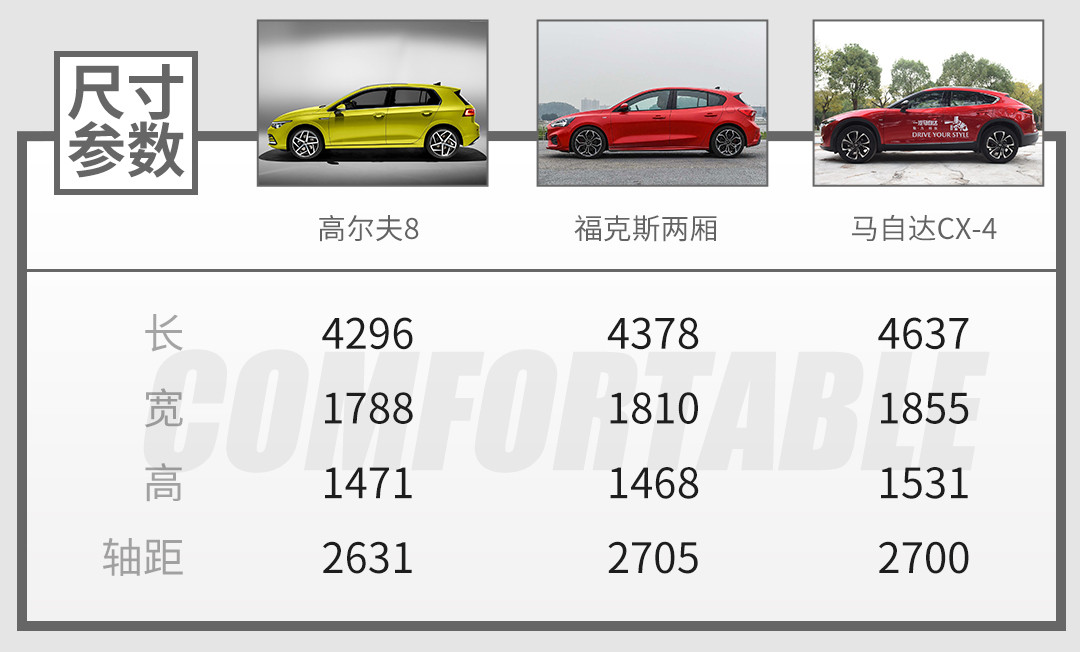 这样一来,高尔夫的驾驶性能就有着不错的保证,那么目前市面上价格体型差不多的对手就已然不多,福特的福克斯两厢以及马自达的CX-4【马3的两厢版还未在国内上市】赫然在列,不过从尺寸上来讲,肯定是有着SUV身份的CX-4更占优势了,而与福克斯相比高尔夫8也并没有什么优势,这种与老款空间相差不大的新车型,销量是否能够延续老款的辉煌,这还得经过市场的检验。