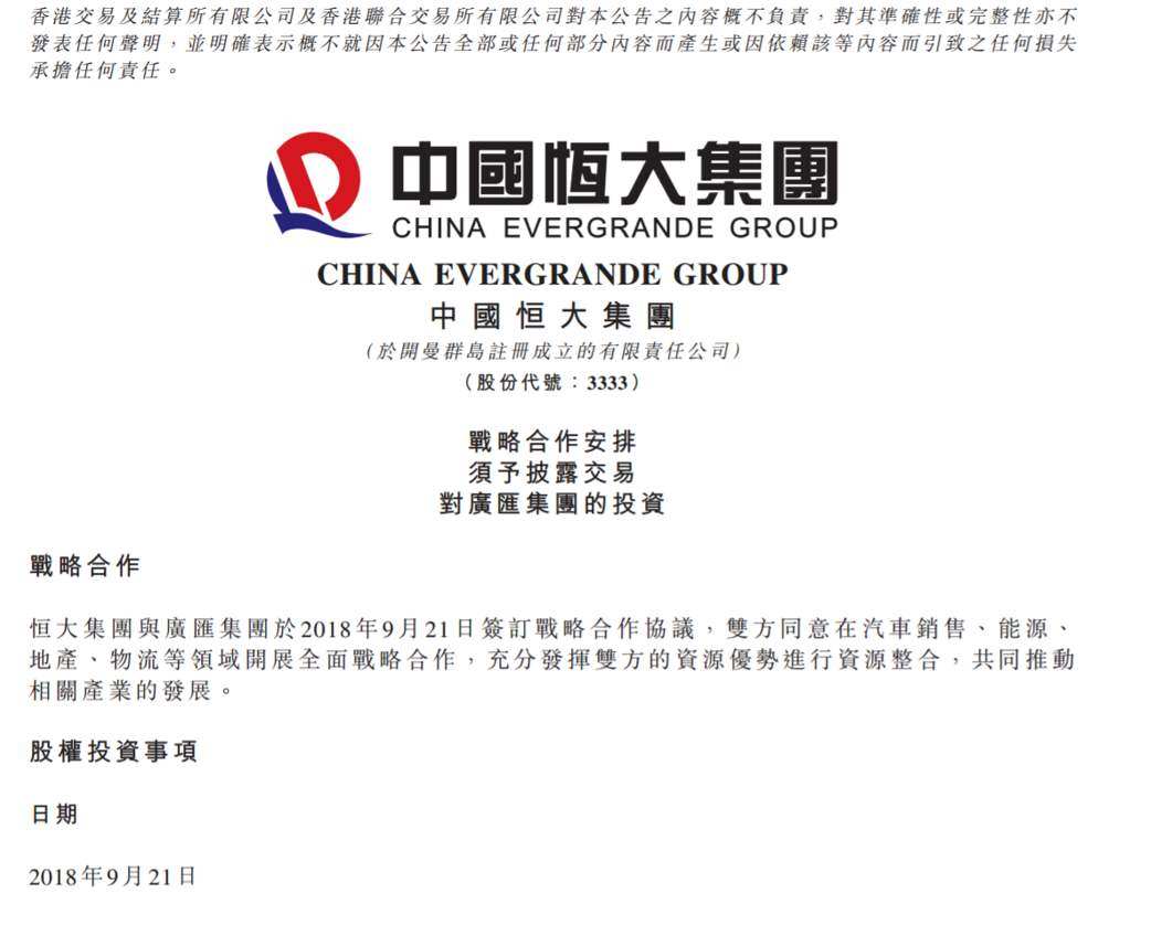 而广汇汽车是中国排名第一的乘用车销售商、中国最大的融资租赁提供商及中国经销商中最大的二手车交易代理商。此次交易也意味着,恒大提前打通了汽车销售渠道,完成最基础的销售布局。