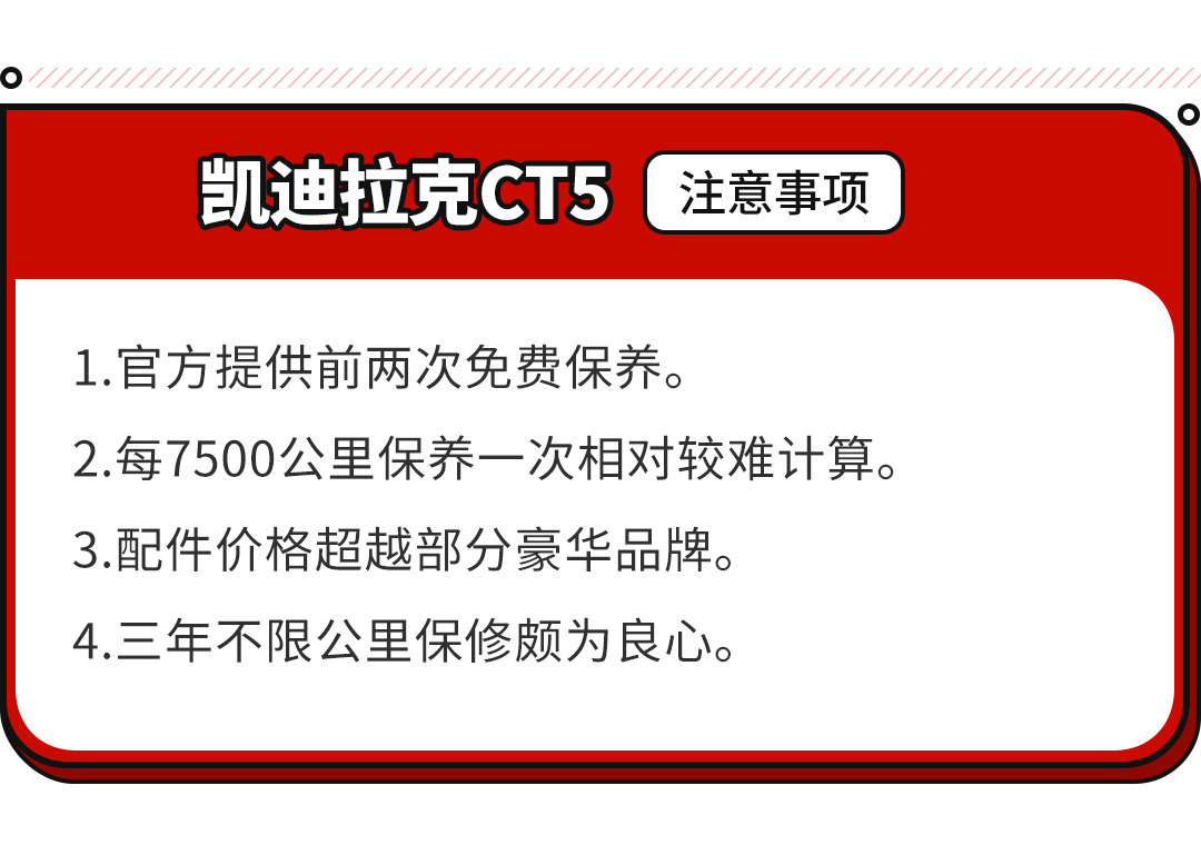 整体来说,CT5在保养方面都一直诠释着美式、豪华这两个词,对于一款豪华品牌车型来说,综合表现也只是中规中矩,并没有太过出色的地方,相比对手3系来说甚至还有一点点“超越”。