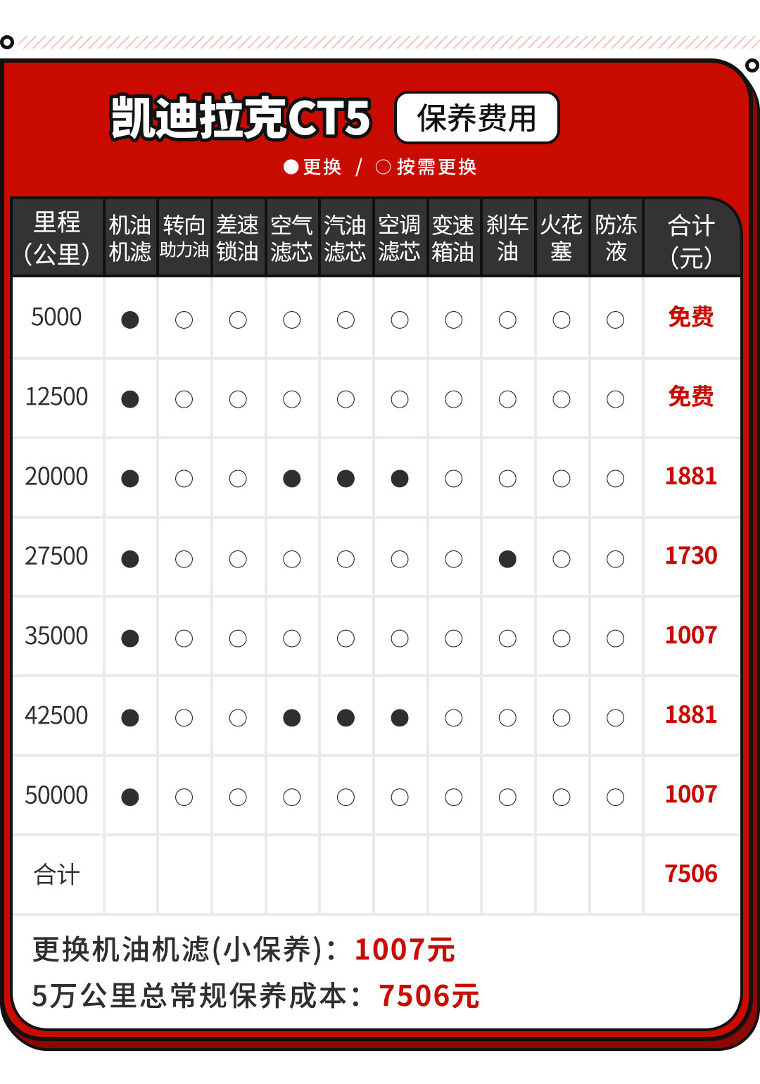 保养方面,CT5的首保与大多数车型一样需要在5000公里的时候进行,而接下来的间隔的每7500公里保养一次,与常规的5000或10000公里来说,还是有点难去计算的。