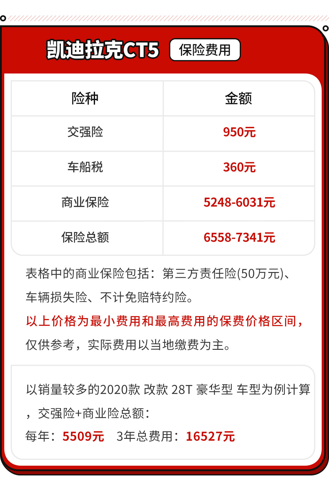 保险费用方面,由于凯迪拉克全系采用的都是2.0T发动机,所以车船税都只要360元即可,这一点还是比较实惠的。而至于保险差价方面,其实也就是因为车价导致车损险价格的差距了。