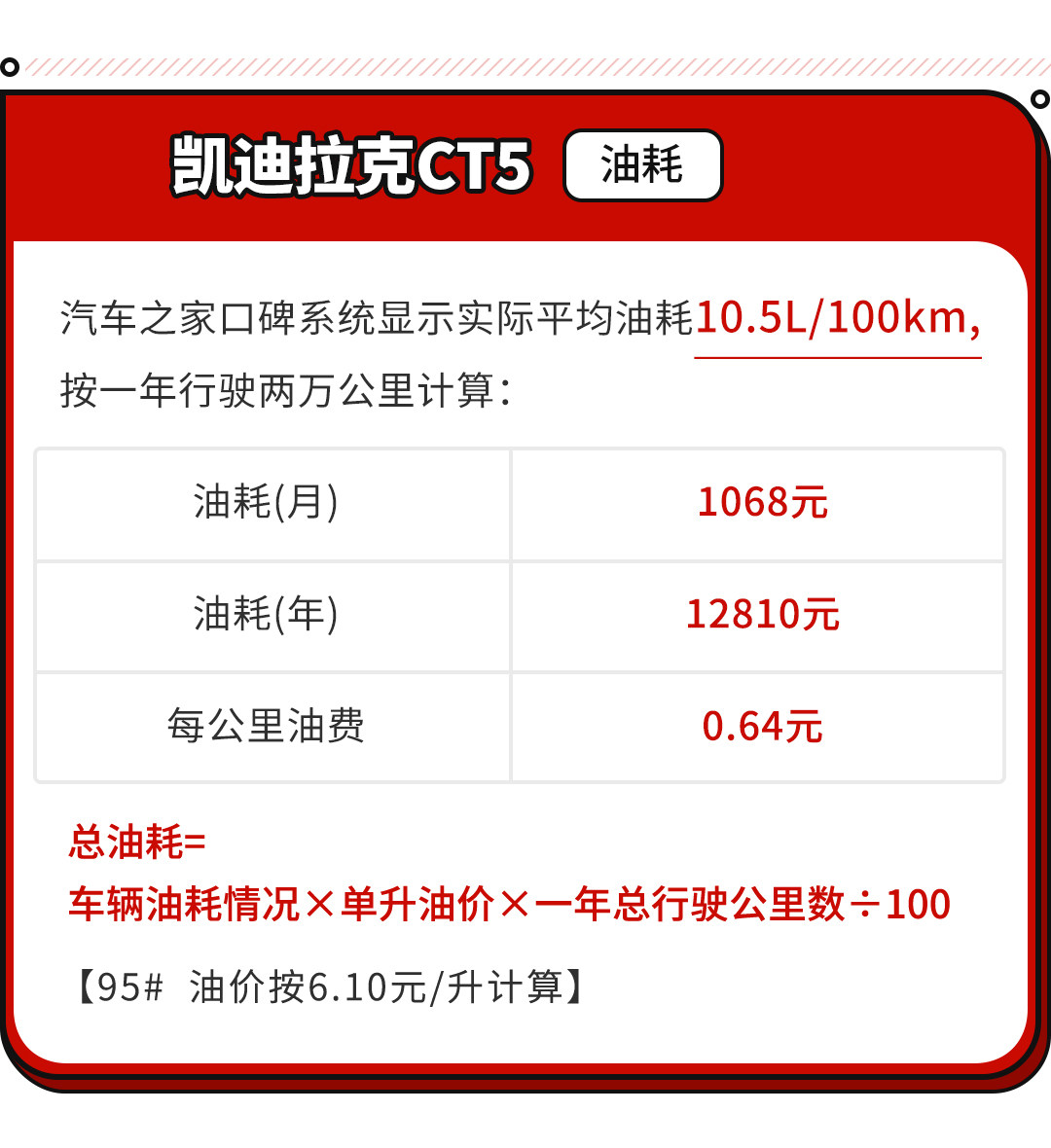 结合整体费用来看,CT5每个月的花销成本需要去到接近2000元,平均每公里花费1.17元,对于一款豪华品牌的B级车来说,也就是那样吧,惊喜没有惊吓也不至于。