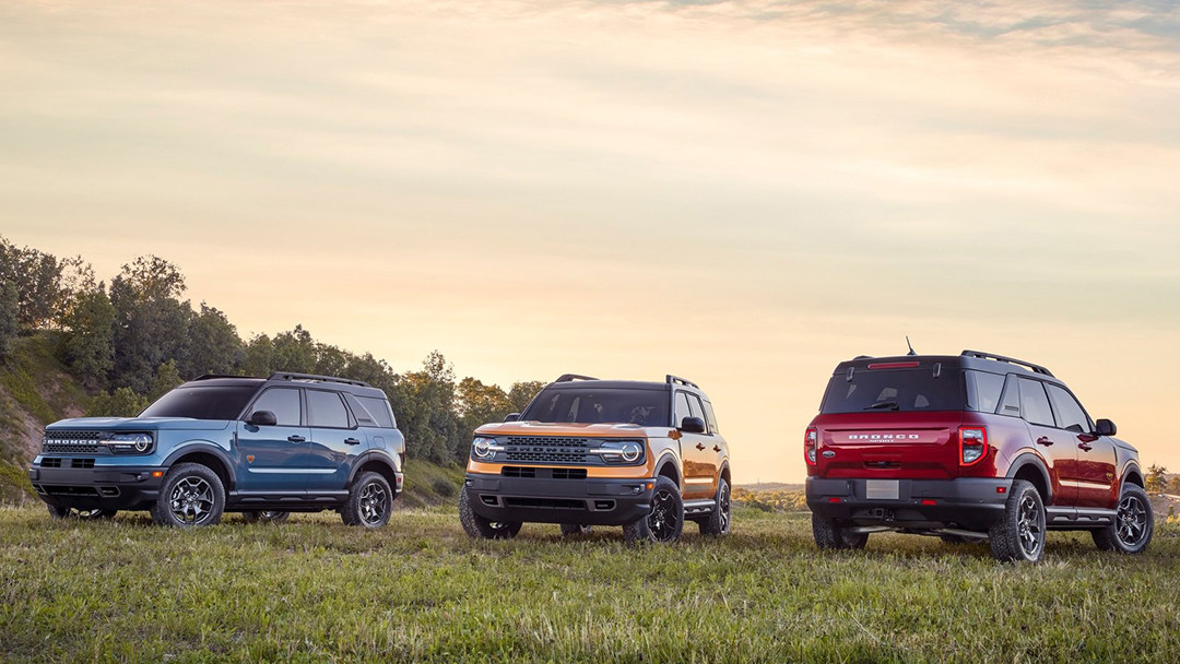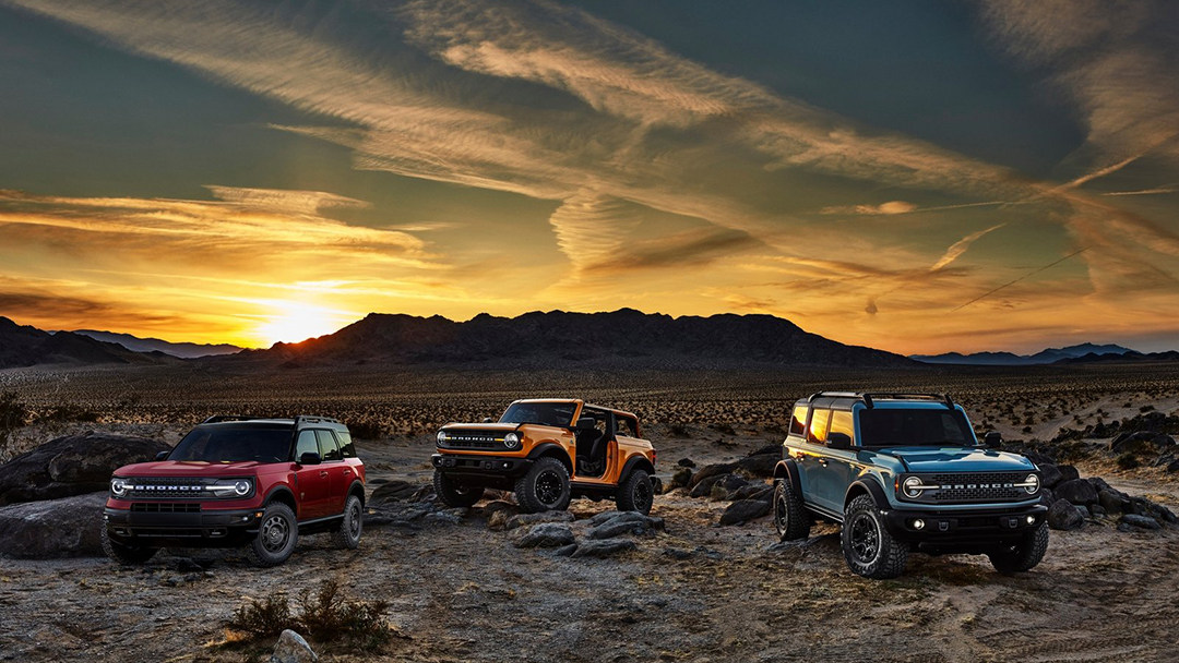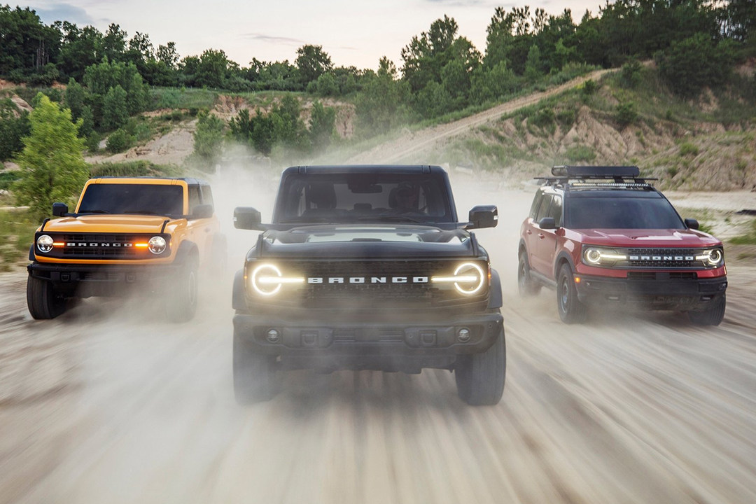 从左到右:Bronco运动版、Bronco两门版、Bronco四门版