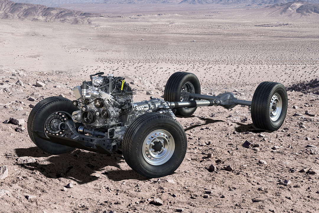 越野性能,前后桥都是由DANA(德纳)提供,全系采用M220 Dana 44 AdvanTEK后桥,M210 Dana AdvanTEK前桥,长行程Bilstein减震器、可断开平衡杆、分时四驱,以及2.3T和2.7T发动机,搭载7挡手动和10挡自动变速箱,性能比起牧马人绝对是有过之无不及。