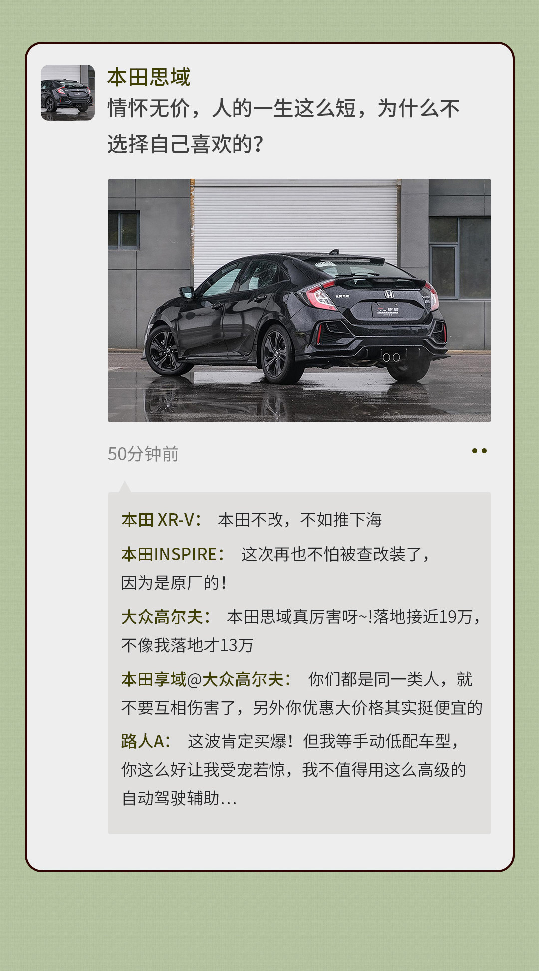 两箱思域原厂177,实测187,低配TypeR,19万你敢说不香么?原厂改装件合法合规,在某宝在买个红标和TypeR 标识,心中马力直飚300,你就是这条该最靓的崽[捂脸][捂脸][捂脸]