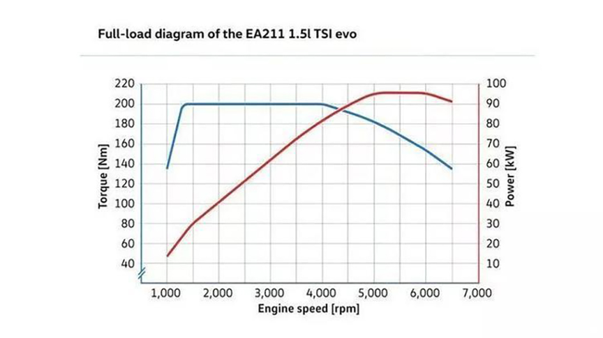1.5T EVO发动机根据调校不同,有着131马力以及150马力两种输出功率,峰值输出扭矩则是200牛·米以及250牛·米。虽然参数看似与EA211相当,但有着以下差异: