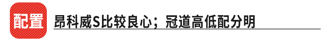 昂科威S的配置,完全可以用良心来形容,不过这主要在于一来价格区间相比冠道最高价要低,二来昂科威推出的车型只有四款,相对低配与高配间的差距不会拉到太大。