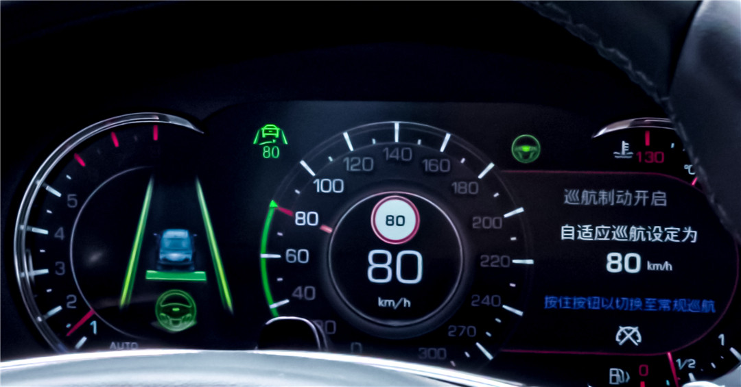 其中的ACC自适应巡航系统以及蓝线车道中央保持系统,大致可以看为其他品牌所宣传的自动驾驶辅助系统,可以在高速道路上自动与前车保持距离,并将车身稳定在车道正中央,实现一种半自动驾驶模式。