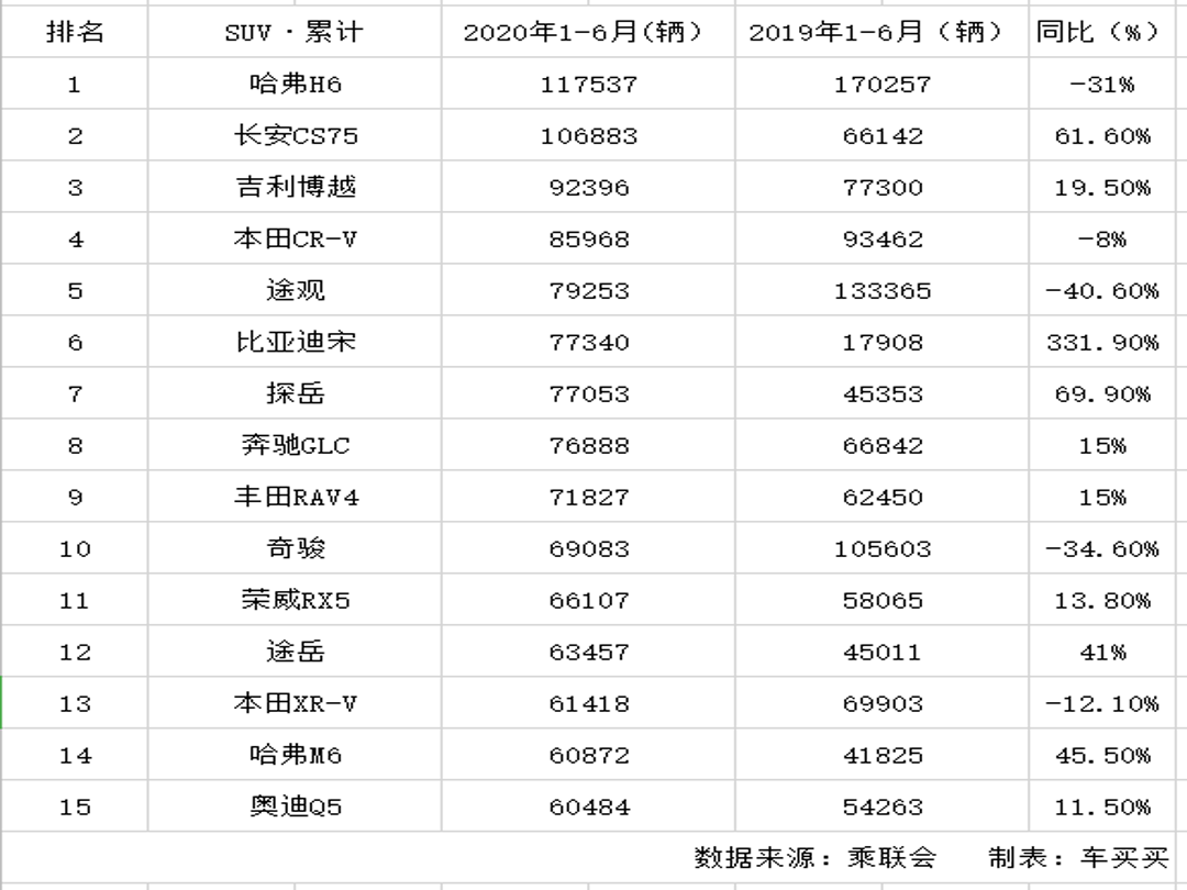 带着这个问题,下面就以今年过去的二个季度总销量做个分析,看看国产自主品牌车型在时下竞争激烈的紧凑型SUV市场,表现如何,是如何靠自身的产品力对垒合资品牌,是不是国产品牌真的不如合资品牌?