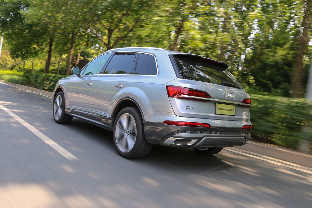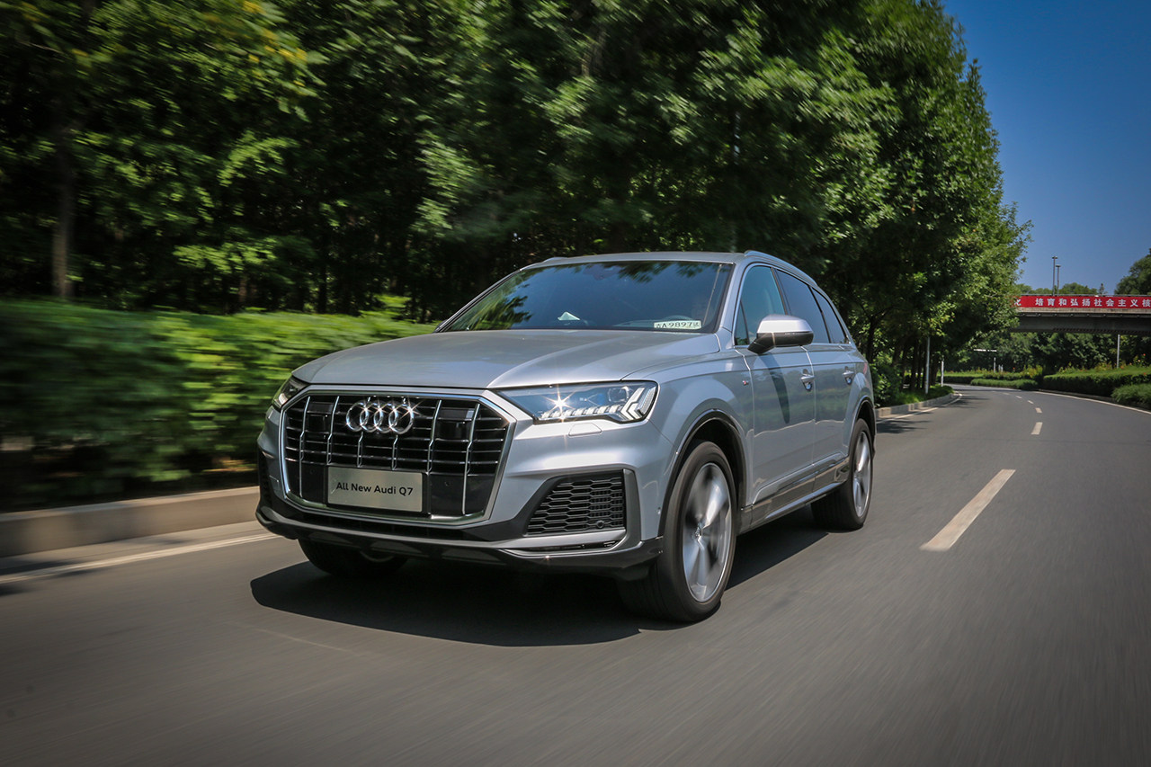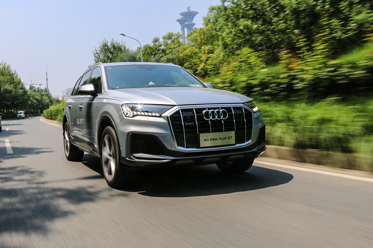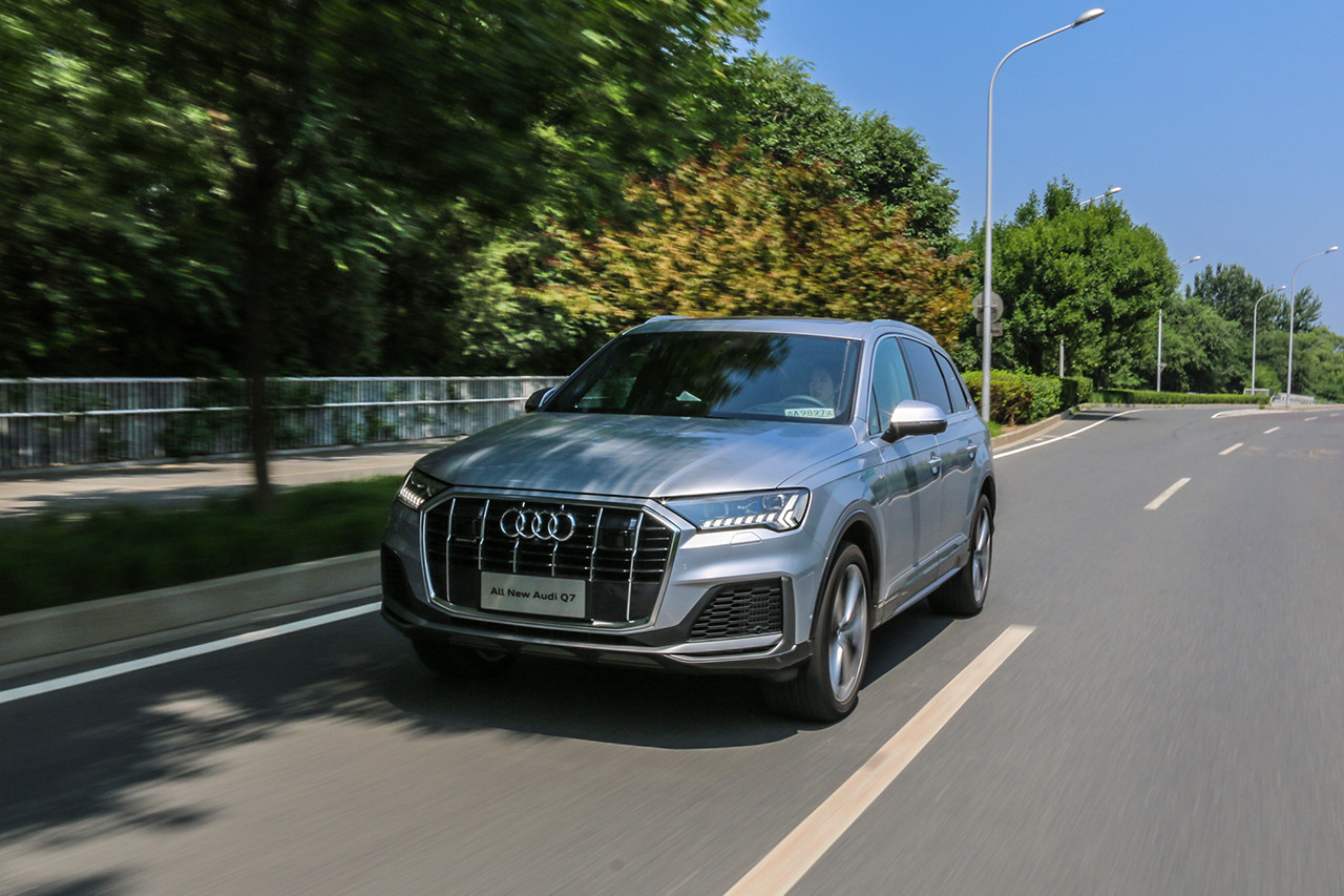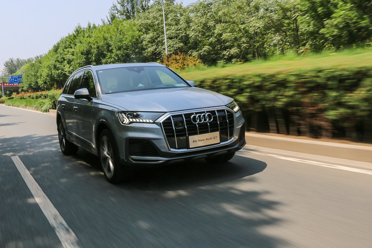 以上这一切在驾驶中都是非常易于感知的。起步一瞬间就感受到了全新奥迪Q7充沛的低速扭矩,相对微小的油门开度就能让这个将近2.3吨的SUV轻松前行,加上非常好的NVH表现,恍惚间闻到了电动车那味儿。