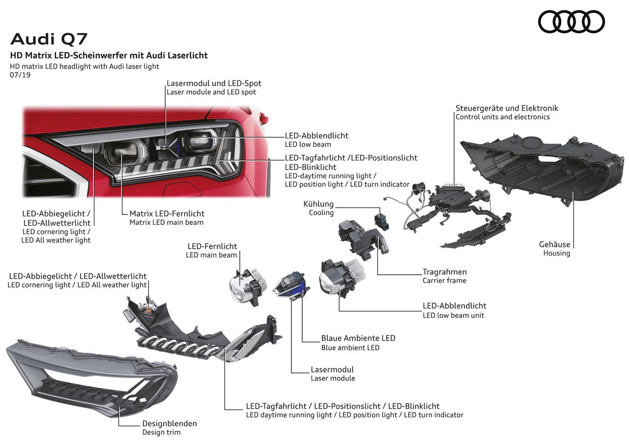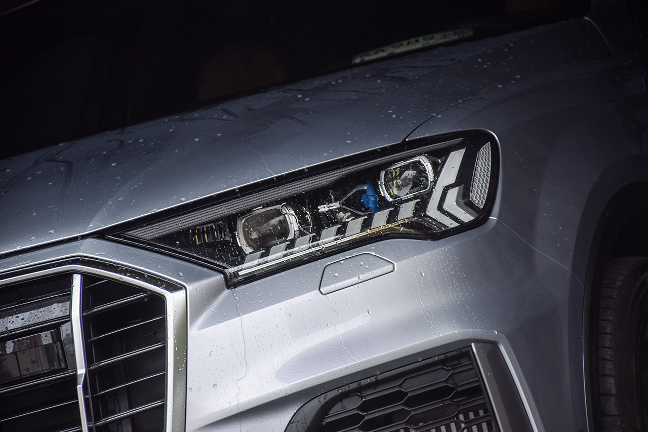 55 TFSI(3.0T)车型近光灯标配LED(这不废话吗!),高配车型的远光灯则是激光大灯(低配选装价格10900元软妹币)。至于能想到的自适应远近光、自动头灯、转向头灯、大灯雨雾模式等等功能都有配备,奥迪在灯光上的造诣显然已经超出了我的认知。