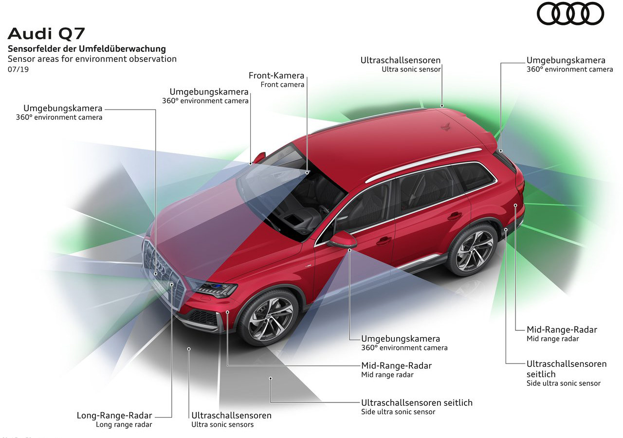 事实上它全车遍布了极多的雷达、图像等传感器,可以360°无死角的识别周边的情况,从而为驾驶者提供各种驾驶辅助、泊车辅助等等功能。