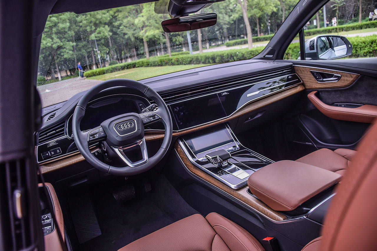 与之匹配的是8速Tiptronic变速箱,整套动力总成的匹配非常默契,平顺性可以给到满分,升降挡都是悄无声息。除了在经济驾驶模式下动力会稍显懒惰之外,其它所有状态下动力响应都很快,快但是并不激进。之前试驾宝马X5,那台B58和8AT的匹配也非常完美,全力加速时给人感受很暴躁,换挡动作很有力量感。而全新奥迪Q7即便是在运动模式下,表现也没那么激进,更为沉稳一些。当然,在这里说这些,我并不是在评判优劣,而是它们的风格不同,宝马毕竟是最为运动的豪华品牌。