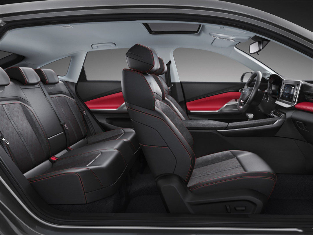 车头的分体式大灯和大面积点阵镀铬中网让人过目不忘,其中分体式大灯上半部分被镀铬条连为一体,看着就像一体成型的长条形灯带,科幻感很强。
