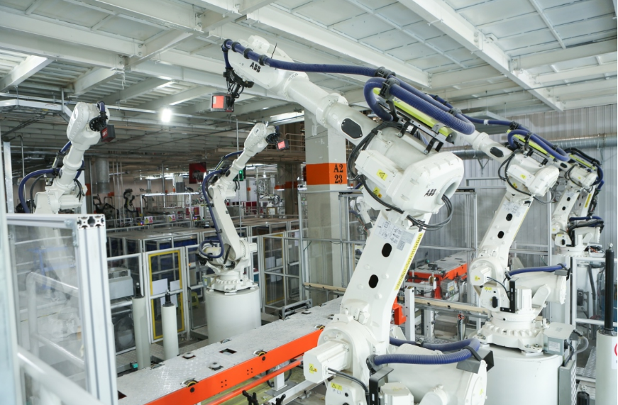 在总装车间,底盘自动合装拧紧、轮胎自动拧紧装配、风挡自动涂胶装配、智能拧紧系统,保证生产的极致精准。