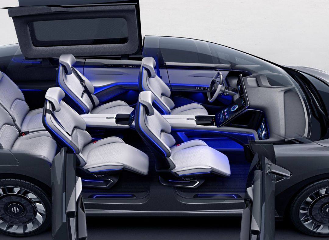 内饰方面,该车采用的是7字形设计,同时在副驾驶前配备了大屏幕,同时采用了2+2+2的6座布局;在科技配置上更是配备了360度环抱式全景行车环境感知系统,以及全球率先搭载的双冗余L3自动驾驶。