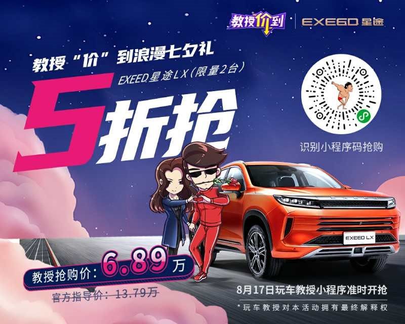 8月17日10:00 玩车教授燃梦计划 长按扫码进入星途专场五折购