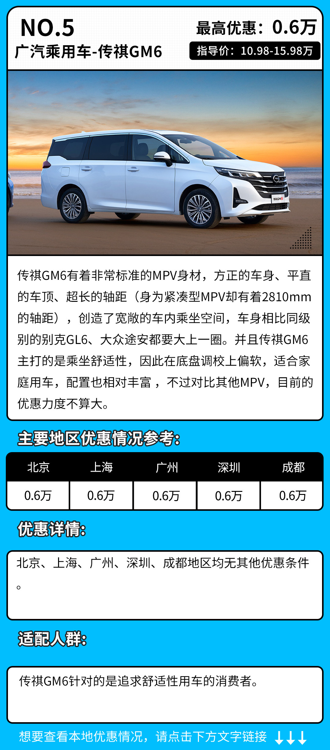 那么这期优惠行情就来看看,在国内市场人气比较高的这些MPV都有哪些优惠吧。