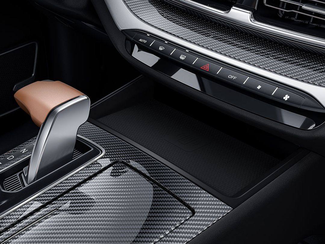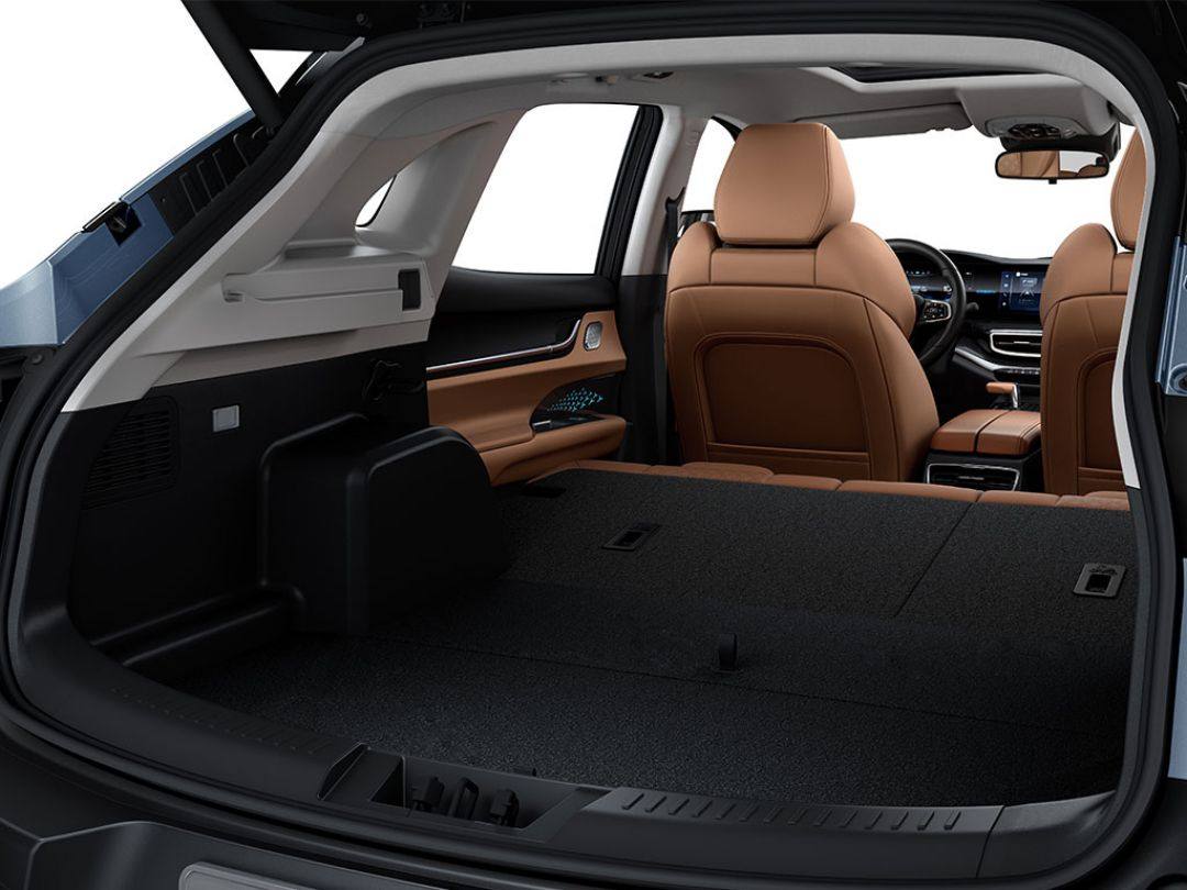 此外,后排座椅支持按比例放倒,放倒后后备箱容积达到了1250升。值得一提的是,新车还配有容积为60升的前备厢。而在实用配置方面也非常全面,新车配备了220V外放电源,以及车外220V专属逆变器,并支持机无线快充、感应式电动尾门、外接音源接口、手机远程空调控制等。