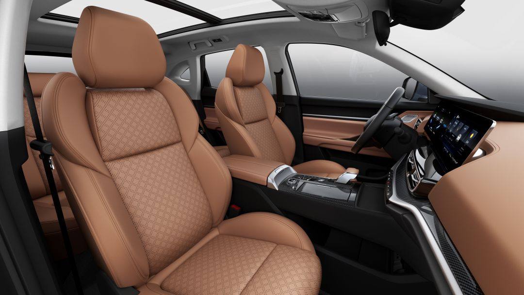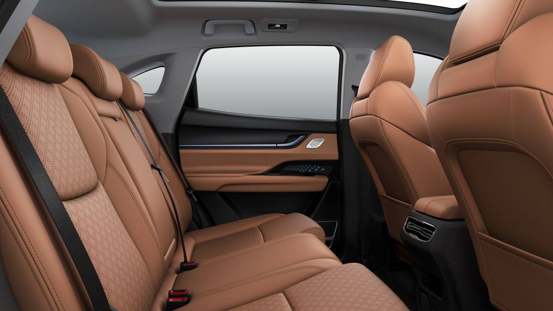 新车采用座椅材料了真皮包裹并配备座椅通风/加热、10向电动调节与座椅记忆功能;后排配备了空调出风口、后排中央扶手、副驾BOSS按键,以及使用纯平的地板设计,带来不错的车辆空间。