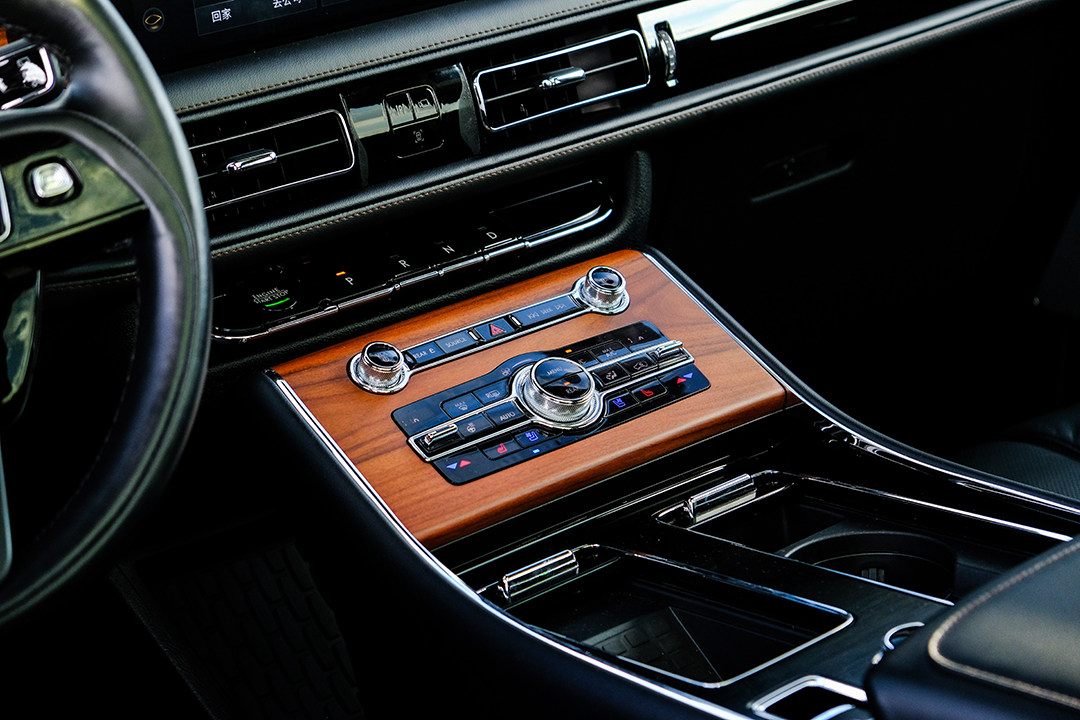 飞行家的内饰获得了2020年沃德十佳内饰称号,说明了业界对它内饰设计的认可。飞行家内饰的设计手法并不复杂,扁平化设计拉宽横向视觉效果,整体上有种简约的风格,不过真皮包裹和木纹装饰等扎实的用料体现了豪华感。