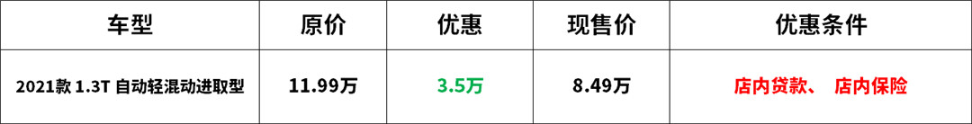 接下来又到了人见人爱的“优惠”环节了,以买买君所在的广州地区为例,目前2021款英朗在售的4款车型,均有着3.5万元的现金购车优惠,也就是说2种动力系统的两个配置车型分别裸车价为8.49万元以及9.09万元。个位数的裸车价还是有着不小的诱惑力的,再加上1.3T轻混车型的实测百公里油耗仅为6.3L,“价格不变更省油”的特性进一步扩大了轻混车型的竞争力。那么,想必朋友们已经差不多猜到买买君要推荐什么车型了。