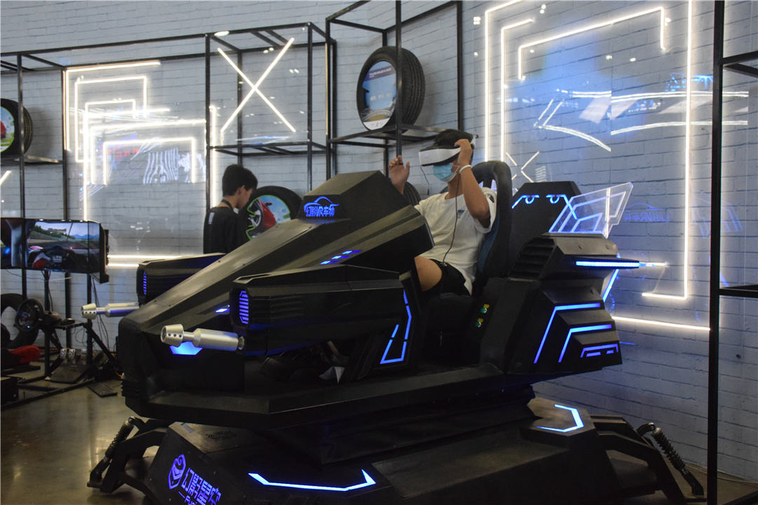 如果觉得还不够爽,可以试试“幻影VR车神”,带上VR眼镜,再加上有如飞机模拟舱那般的可动平台,从听觉、视觉、触觉,这几方面达到最强大的逼真感,就算不是驾驶实车在赛道上驰鹏,也能体会到驾驶实车的真实感。