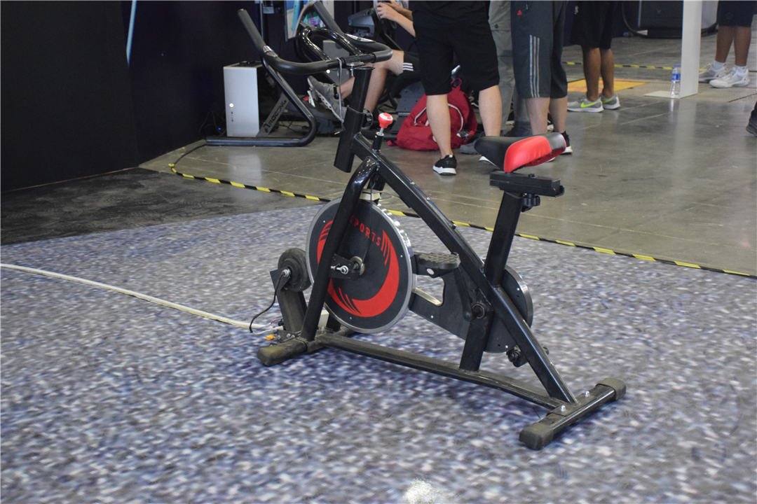 如果你觉得卡丁车还是太刺激,怕自己承受不了。还有更轻柔的体验项目在等着你,比如骑行发电装置,通过轻松的骑行发电方式同样可以体会新能源的魅力,而且为了增加刺激程度还设有PK环节。