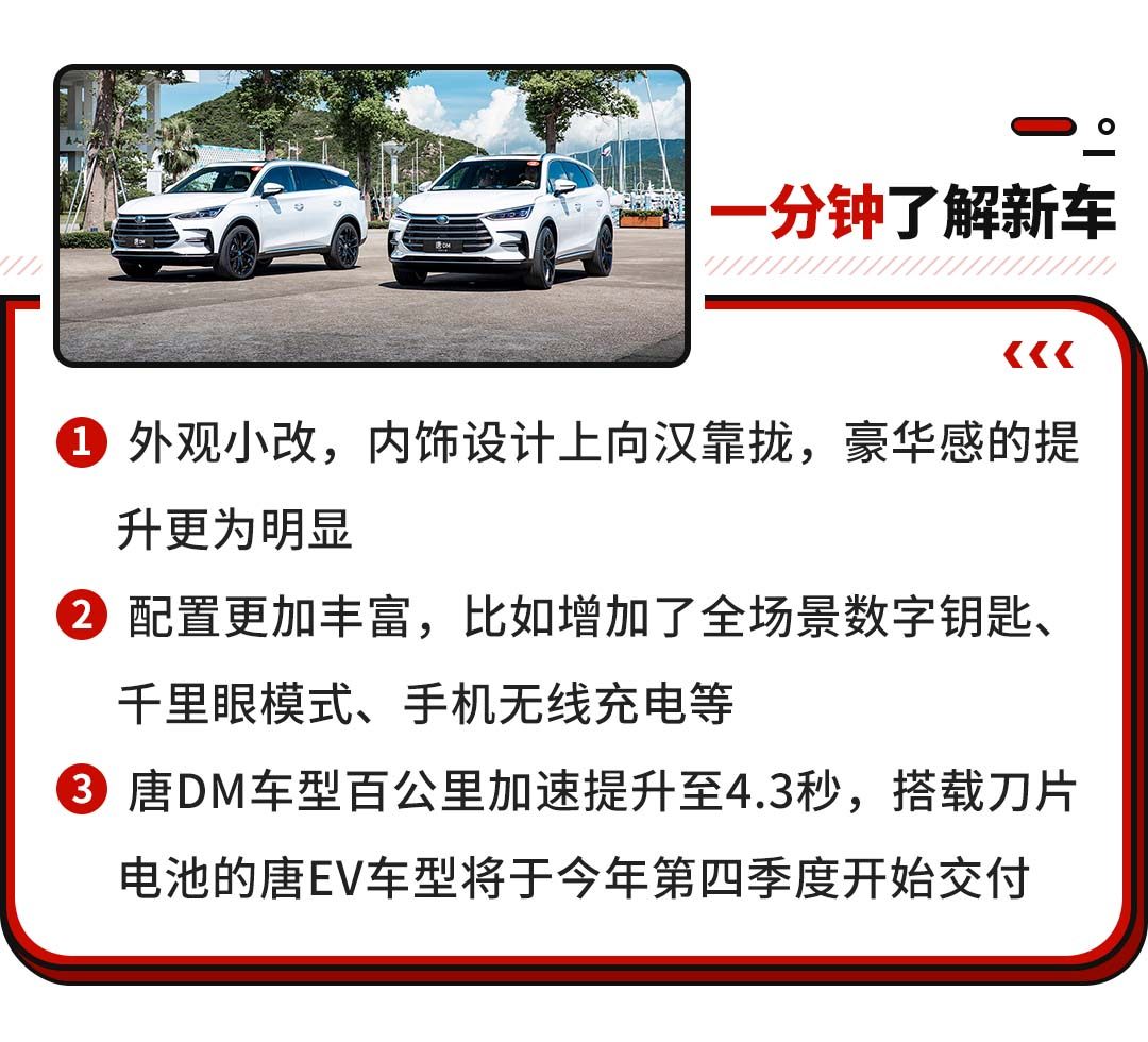 作为小改款车型,2021款比亚迪家族车型在外观、内饰以及电池方面都有着不同程度的变化,尤其是内饰豪华感的提升和唐EV车型搭载的刀片式电池的变化,由外及内的变化正让唐家族车型越发完善。