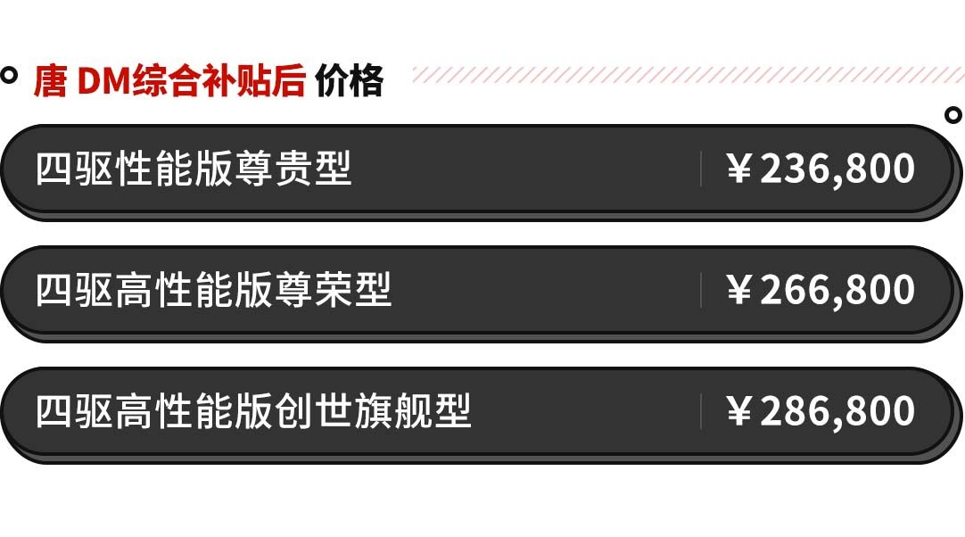 8月16日,2021款比亚迪唐家族车型正式上市。其中,唐燃油版车型售价为16.58万元,搭载2.0T+6AT动力总成,前期只提供旗舰版一款配置车型;而唐DM版本车型综合补贴后售价为23.68万-28.68万元,共提供三款配置车型;唐EV版本车型综合补贴后售价为27.95万-31.48万元,共提供两款配置车型。