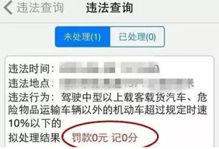 如果违反上述限速规定的车主虽然不会被扣分罚款,但会收到一张0分0元的罚单,根据规定这样的罚单是不能通过网上进行处理,必须携带本人身份证、驾驶证、行驶证原件,到违法地或车辆登记的交警大队或者车管所的服务窗口才能处理。如果长期未处理,还可能影响车辆年检,此外,警告次数累积过多也可能会扣分罚款。