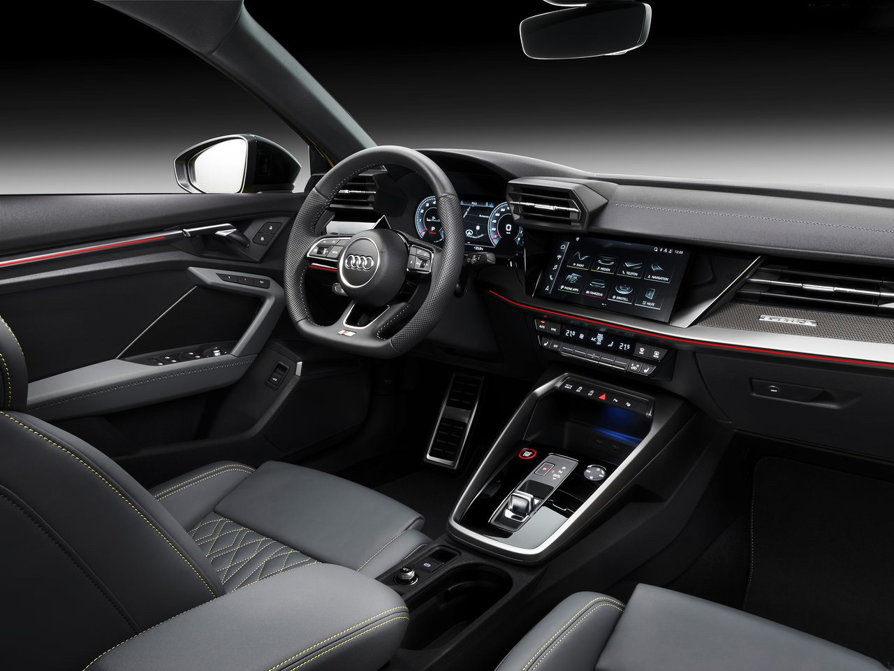 内饰就没有太大的“惊喜”了,因为在全新奥迪A3上已经见过了,10.25英寸的全液晶仪表盘搭配内嵌式的10.1英寸中控多媒体触摸屏,再配合带换挡拨片的三辐式平底运动方向盘与拨杆式的电子换挡机构,把科技感展现地淋漓尽致。