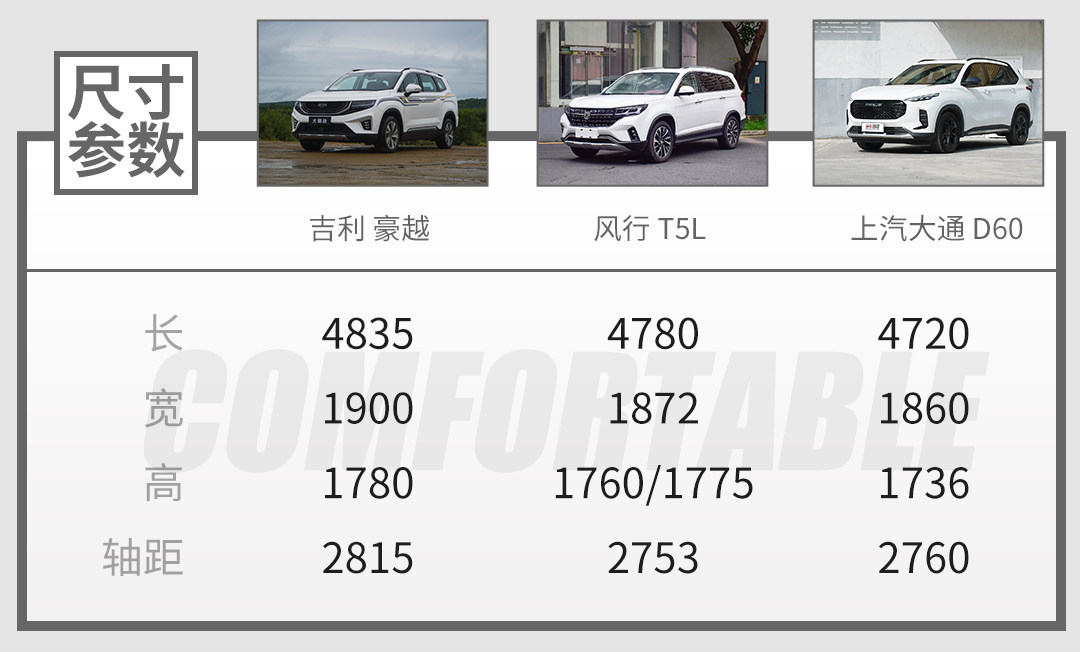 豪越诞生自吉利的CV平台,也是吉利的七座车专用平台,同样是定位MPV的吉利嘉际也是诞生自该平台,虽然豪越定位的中型SUV,但是骨子里还是有MPV的特质。