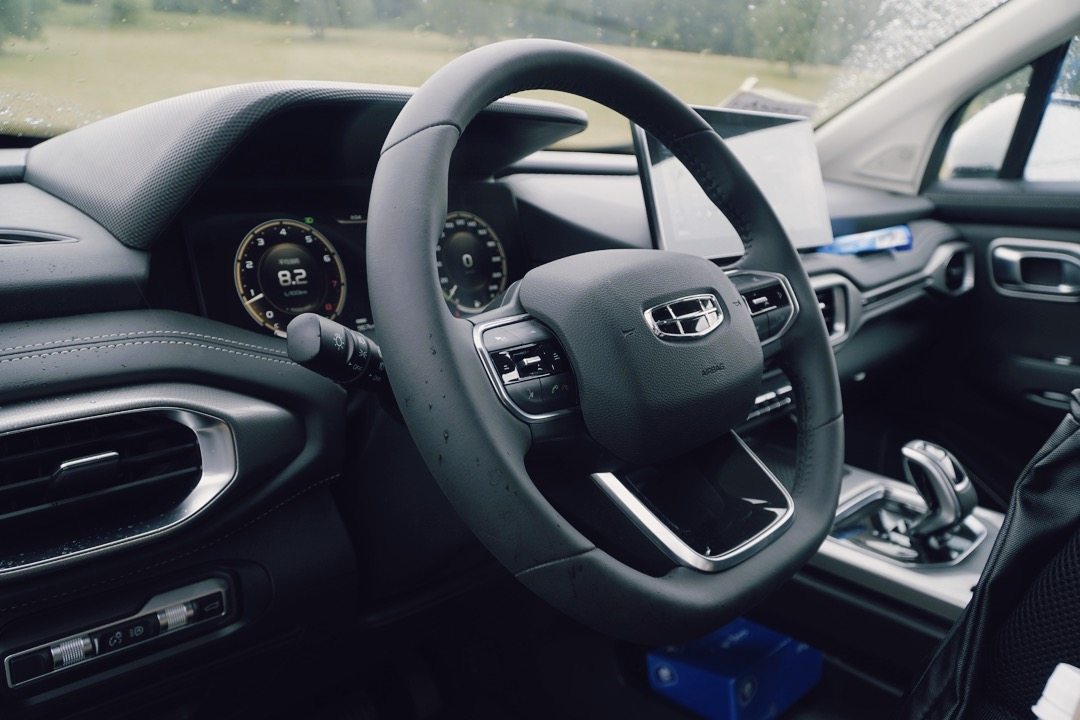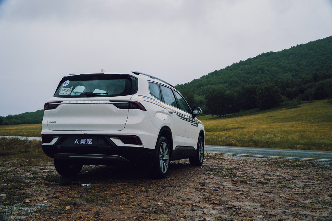 车尾跟车头使用相近的设计语言,整体以简洁、硬朗为主,虽然没有复杂的线条,但是简单几笔就勾勒出豪越的美感,尾门中央还有镀铬装饰条连接起左右尾灯,增加车尾的整体性和层次感。在镀铬饰条上还有吉利的英文logo。