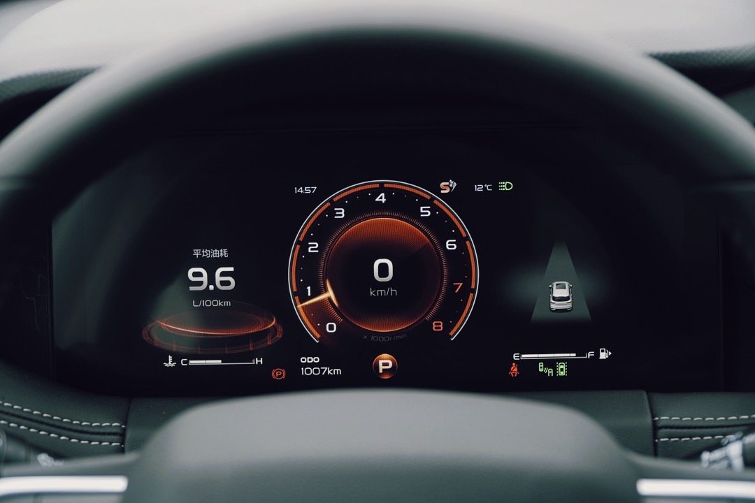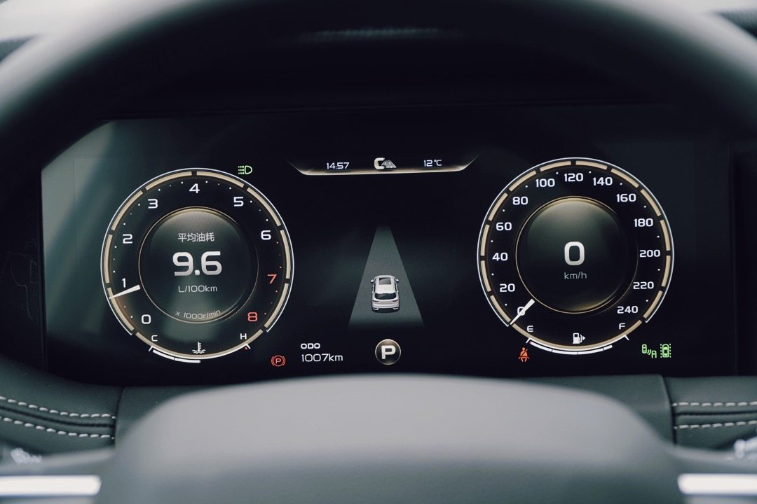 顶配车型装配了12.3英寸的全液晶仪表,普通模式下整体UI设计还是以双圆表为基础,这种设计好处在于上手难度低,不会出现找不着北的尴尬,不足在于与传统车型拉不开差距。当然,在你选择运动模式或者舒适模式时,仪表UI会随着驾驶模式的改变而变化。