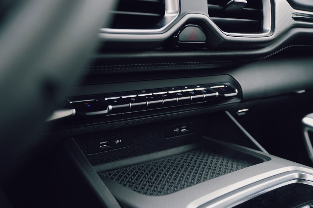 电子挡把的加入让车辆的高级感、科技感提升到另一个档次,同时电子挡把的加入可以实现自动泊车功能。在挡把后方还有驾驶模式选择以及车辆功能控制,诸如电子手刹、360°全景影像、陡坡缓降等功能均在此调节。