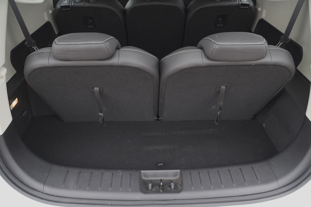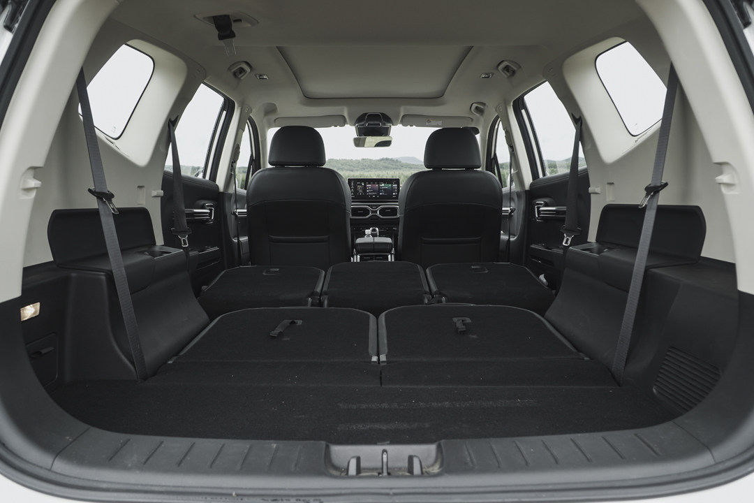 很多人都说SUV的第三排空间一般,根据实际体验,得益于靠背相对倾斜,所以有一个对比同级别车型相对出色的头部空间,但是腿部空间表现就不如头部空间出色了,想要长途乘坐,还是前两排会比较出色,第三排虽然也能坐,但不是那种相当舒适的体验。当然,如果你满座出行的话,后备箱的容量就没多少了,车身尺寸的掣肘也没办法。