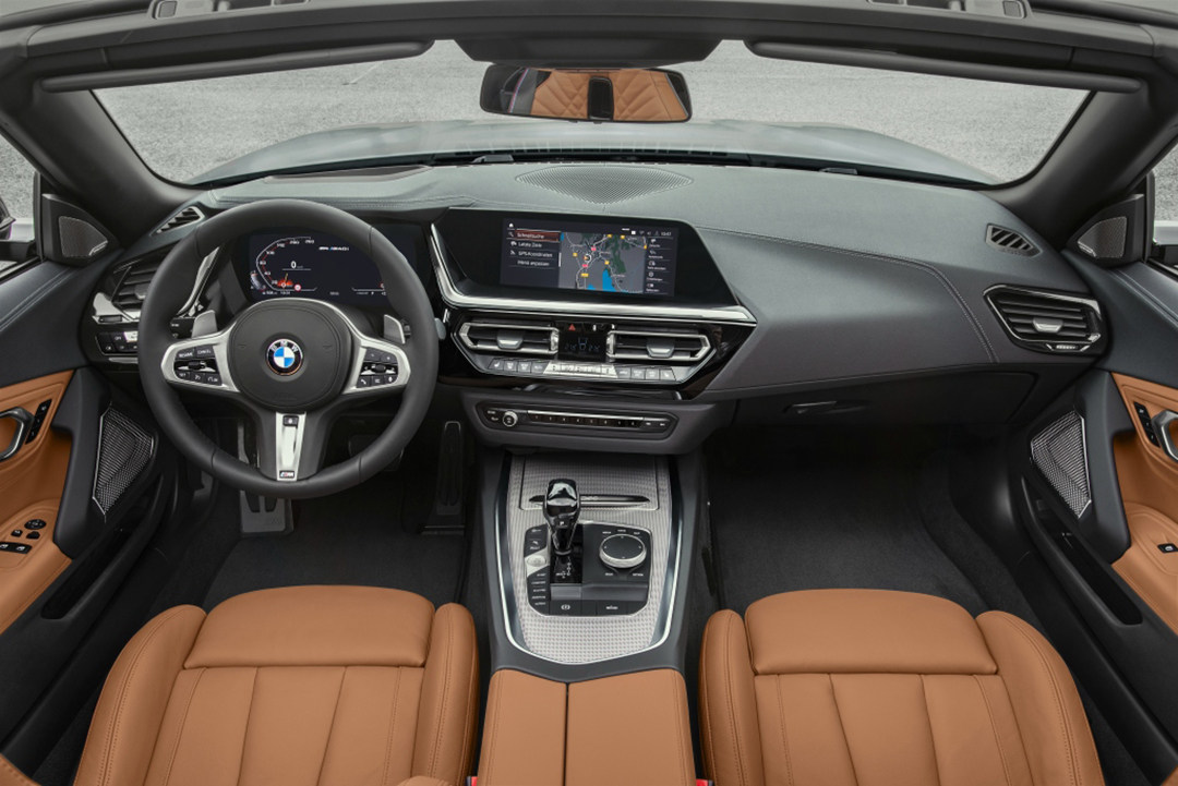 在内饰部分,Z4维持着宝马家族式设计风格,无论是M运动方向盘还是棱角分明的电子档杆、向驾驶侧倾斜且与液晶仪表盘基本处于同一高度的中控多媒体屏幕等细节都能马上让人认出它作为宝马车型的身份。