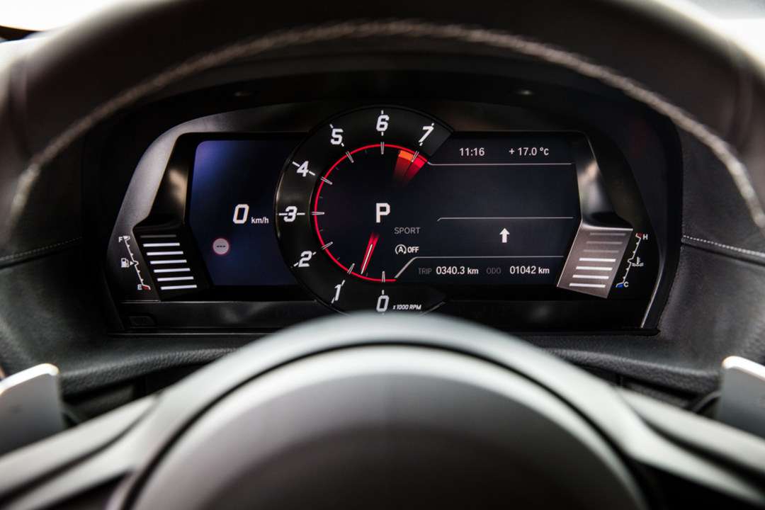 而丰田Supra则在内饰设计方面带来了更多看点,由笔直的横向线条构成的中控台显得十分“纤薄”,通过凹槽与银色饰条连接的空调出风口使内饰层次感大幅提升,大面积使用的碳纤维饰件以及红黑拼色设计的方向盘为Supra的内饰带来了更强烈的运动感。与Z4单纯以一块液晶屏显示的仪表盘相比,Supra的仪表盘加入了一层分区覆盖件,将全液晶仪表玩出了传统机械仪表的感觉。
