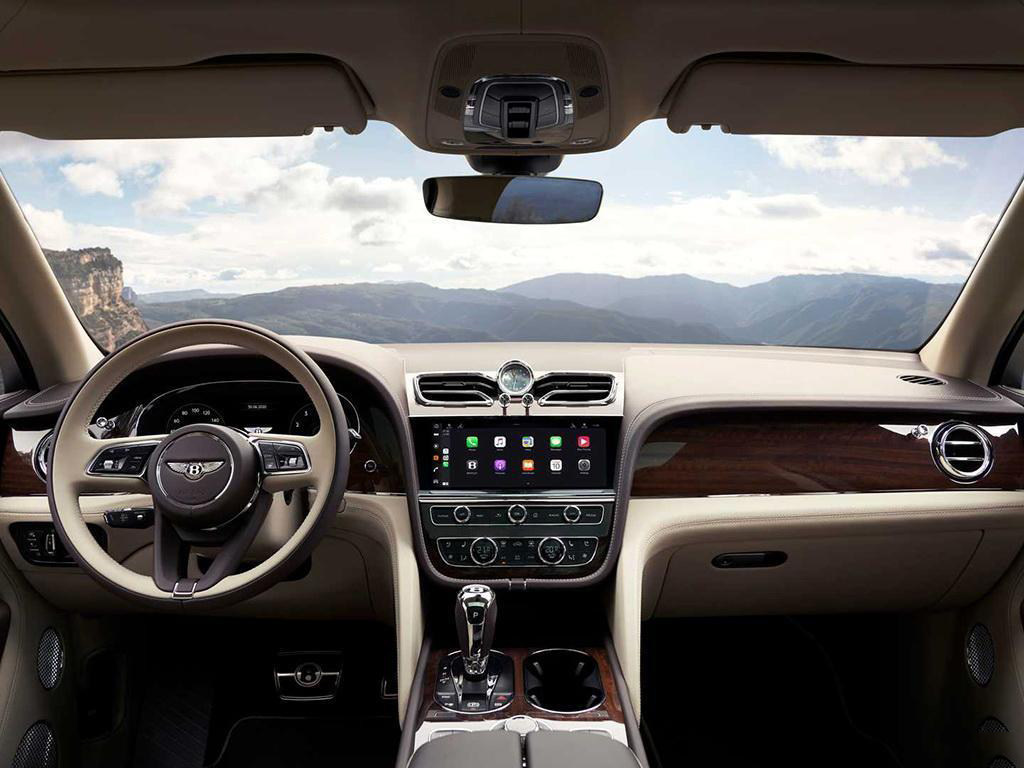内饰延续了老款的设计,飞翼式布局的中控台是宾利家族典型象征,整个内饰都是皮质和实木的包裹。老款的机械式仪表盘也升级为12.3英寸全液晶仪表盘,为了保留真实的机械质感,表盘背景特意设计了放射线纹理,以增强质感,细节处理得非常到位。2+2四座、2+3五座和2+3+2七座三种座椅布局一次性满足老板对座椅布局的需求。