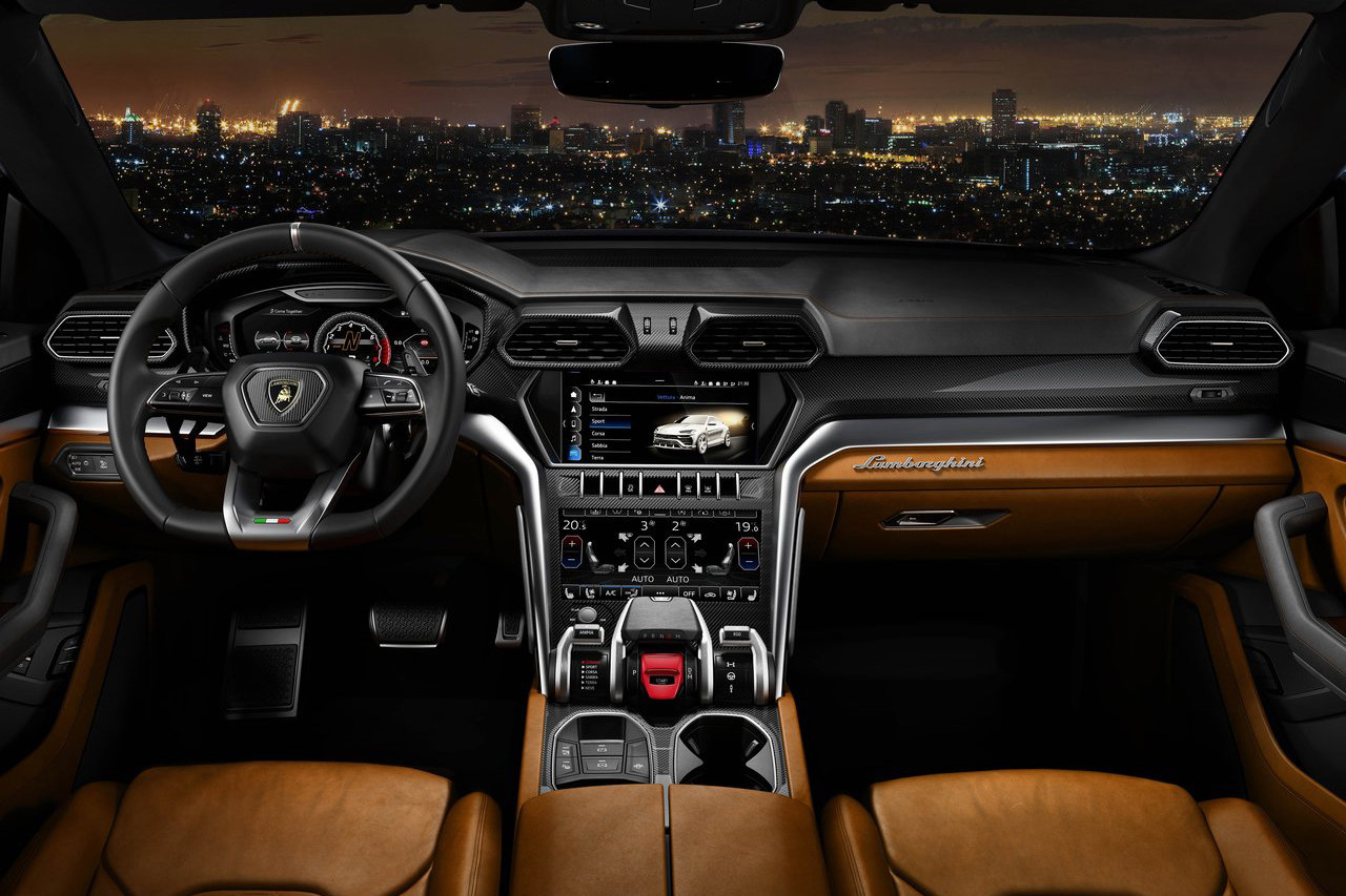 内饰的设计依旧很兰博基尼,多功能运动方向盘,标志性的红盖板,无边框的车门都在诉说着自己的与众不同。实用性也是有的,后排座椅,后排娱乐系统以及全景天窗,坐在兰博基尼的后排再也不是梦了。
