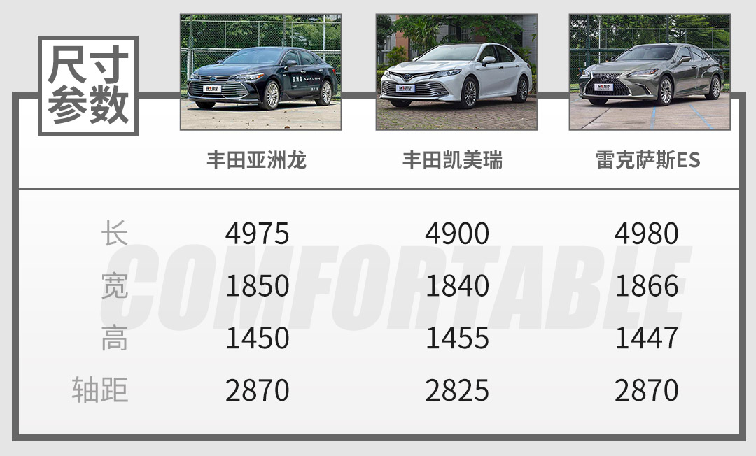 新亚洲龙是丰田TNGA架构GA-K平台的第二款车型,而第一款和第三款分别就是第八代丰田凯美瑞和第七代雷克萨斯ES,三款车型共享底盘平台以及动力总成,可见三车关系相当紧密。其中亚洲龙的车身尺寸甚至与雷克萨斯ES高度接近,因此,所谓的“亲民版雷克萨斯ES”并不只是凯美瑞,亚洲龙同样如此。