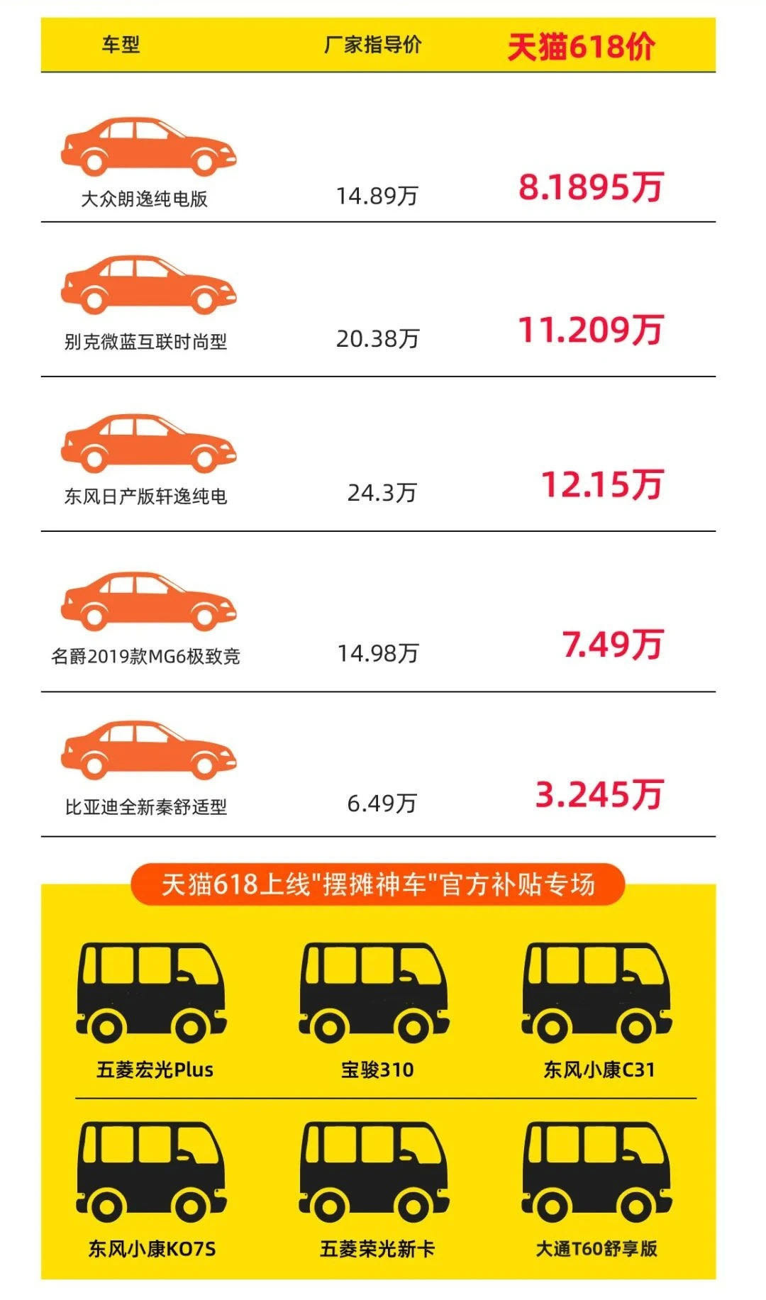 我们刚才也说了,不少车企正在举办联合活动,而从上图可见,部分车企都针对一些车型给出了5折的价格优惠,而这些优惠平常在经销商手上根本是拿不到的,最低3万出头就可以买到车,真的是买买君看到都觉得酸了。